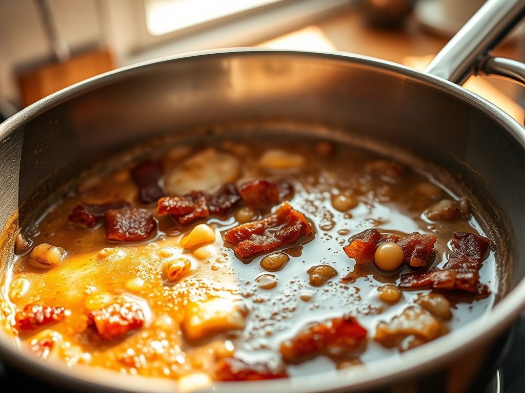 Once the bits have reached a deep mahogany color, as seen in the reference photo, they are nearing the shatter point. The foam in the pan will increase significantly as the last of the moisture departs. Immediately remove the pan from the heat. Use a fine-mesh strainer to separate the Crispy Bacon Bits from the liquid gold (rendered lard).
